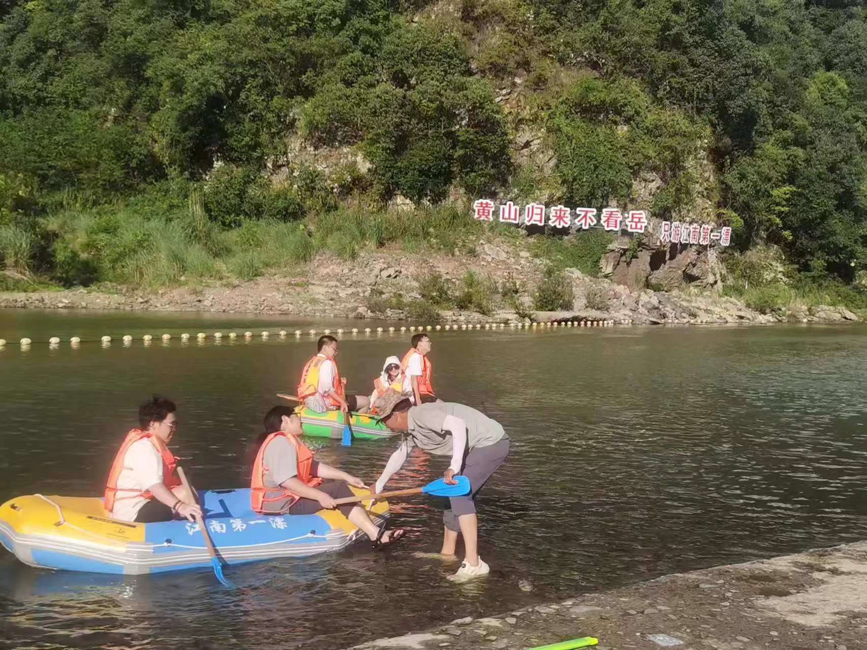 在江南第一漂沿河、沿途中心,“安全员”们坚持在各自岗位区域中,为漂流的游客“推波助澜”,他们的后背早已被汗水浸湿,汗水顺着发梢流进眼里,但他们依旧密切观察众多游客的安全情况,不敢放松和懈怠,不停地提醒漂流中的游客:“穿好救生衣!注意安全!”在烈日下坚守,只是为了游客的全程安全与无尽欢笑。