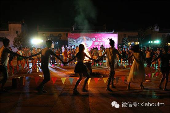 农历七月初七,是中国的情人节,在这充满浪漫气息的仲夏之夜,唐模景区在唐模法国家庭旅馆七天井广场组织了以 “浪漫七夕 邂逅唐模”为主题的篝火晚会,来自黄山市各大旅行社、黄山市户外团体、自由行散客、入住家庭旅馆客人、意昂3的青年职工共600多人参加了这次活动,共同度过了一个浪漫激情的“七夕”情人节。