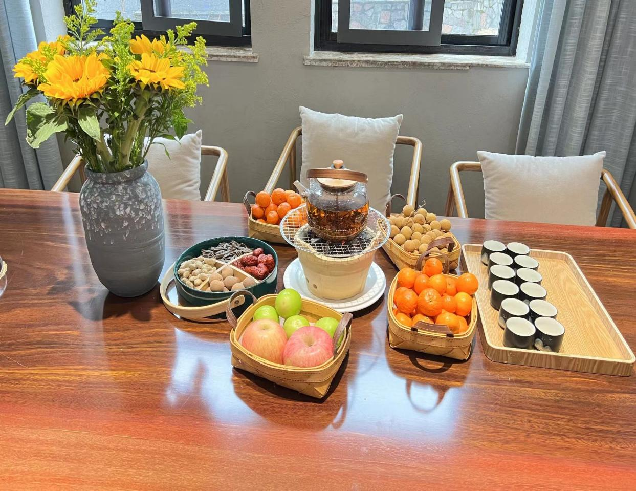 近年来,天堂寨疗休养基地依托得天独厚的自然风光和丰富的自然资源,不断探索和实践“疗休养+”模式,将养、疗、休、教、乐深度融合为一体,提升职工福祉。基地为丰富职工疗休养体验,结合地区民俗文化,创意推出“杀猪宴”体验活动,品尝地道农家美食的同时,体验传统乡村生活的乐趣。此外,基地积极履行企业社会责任与担当,与当地马石村村委会紧密结合,共同开发旅游资源,积极宣传和推广马石村特色农产品和手工艺品,帮助村民拓展销售渠道,为乡村旅游振兴添加新活力。