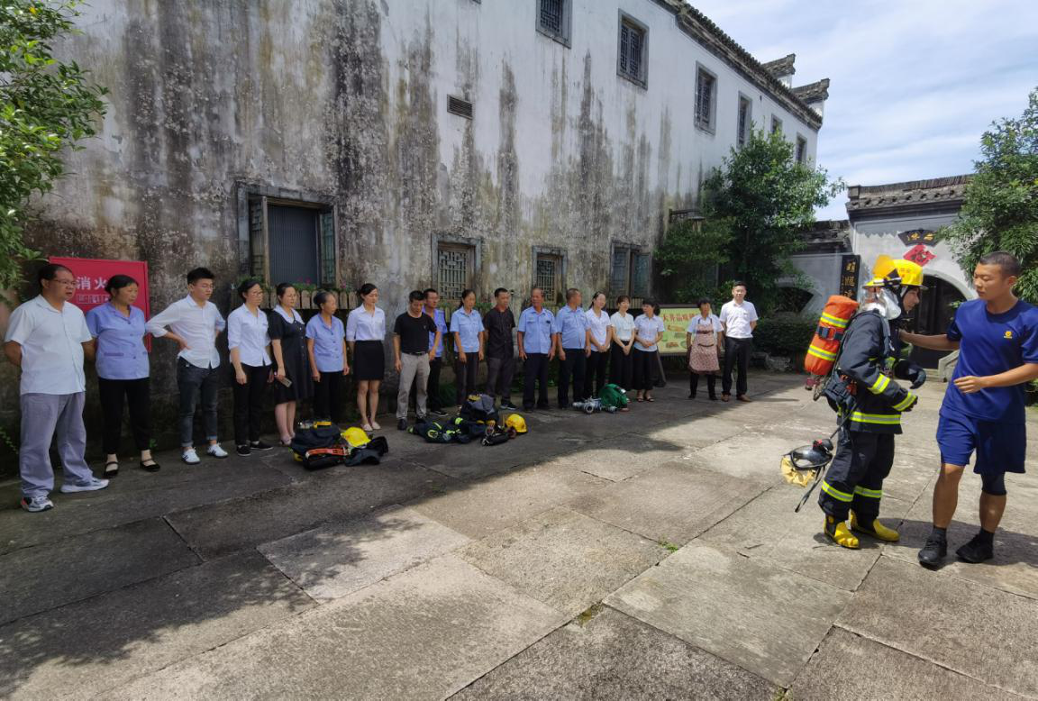 为切实加强公司的安全生产工作,进一步提高全体员工的消防安全知识和灭火技能。2020年8月14日,唐模公司邀请徽州区消防救援大队消防员到唐模法国家庭旅馆为员工举办以“安全第一、预防为主”为主题的消防安全培训演练。