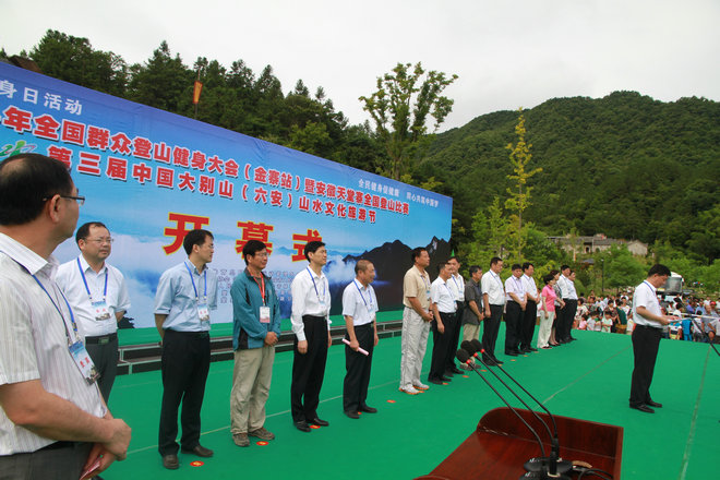 安徽省人大常委会副主任宋卫平、安徽省委宣传部副部长贺懋燮、国家体育总局登山运动管理中心党委书记续川、国家体育总局登山运动管理中心户外部主任张志坚、六安市委书记孙云飞、市长毕小彬等领导参加了开幕式。开幕仪式上,国家体育总局登山运动管理中心党委书记续川向金寨县授赛旗。来自全国24个省、市的200多名专业运动员、500多名登山爱好者参加了本次大赛。